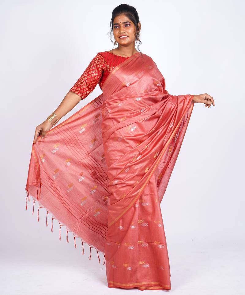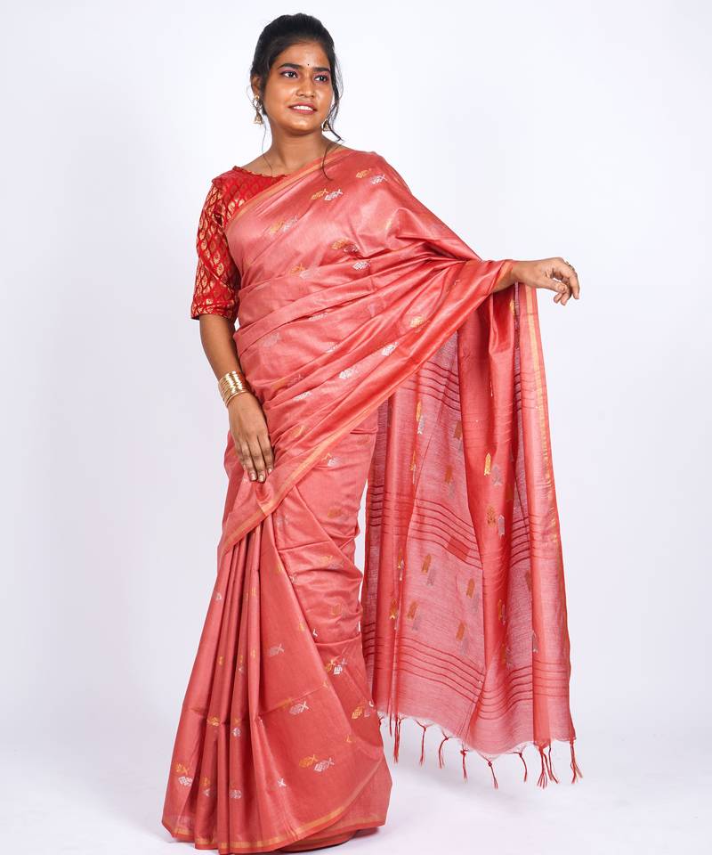 | • | Saree | : | Color- Salmon / Fabric- Cotton Silk |