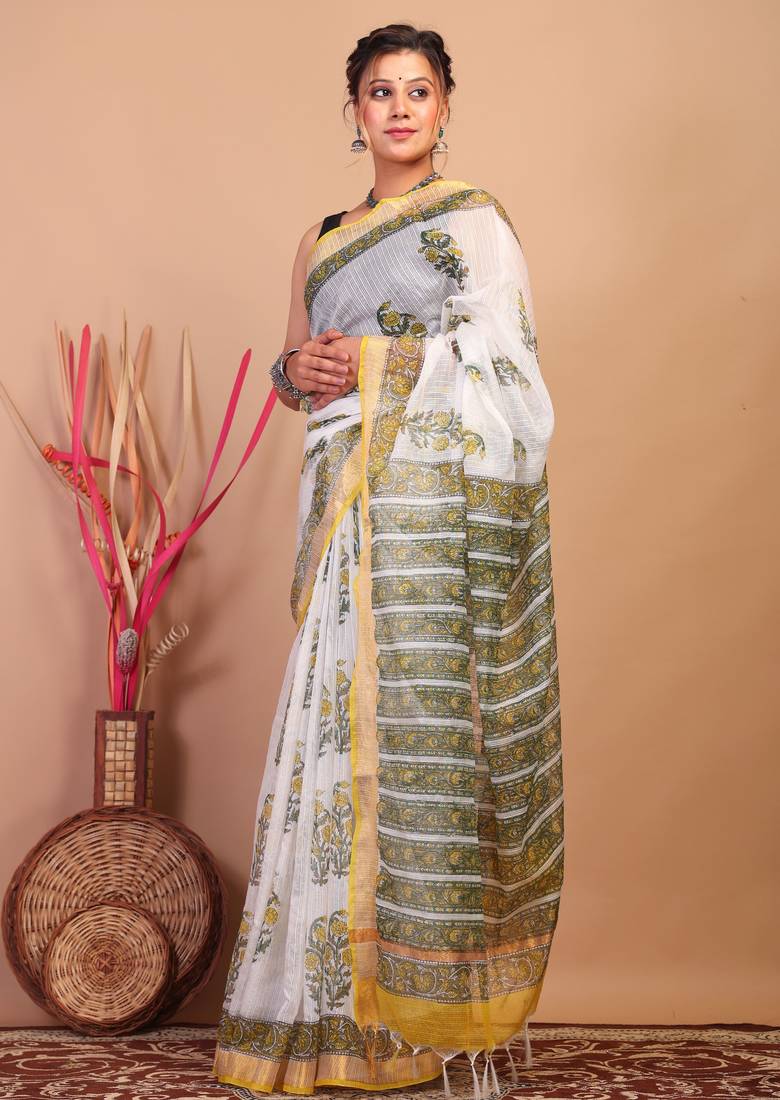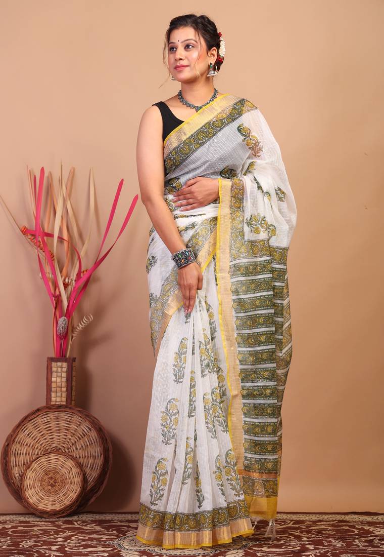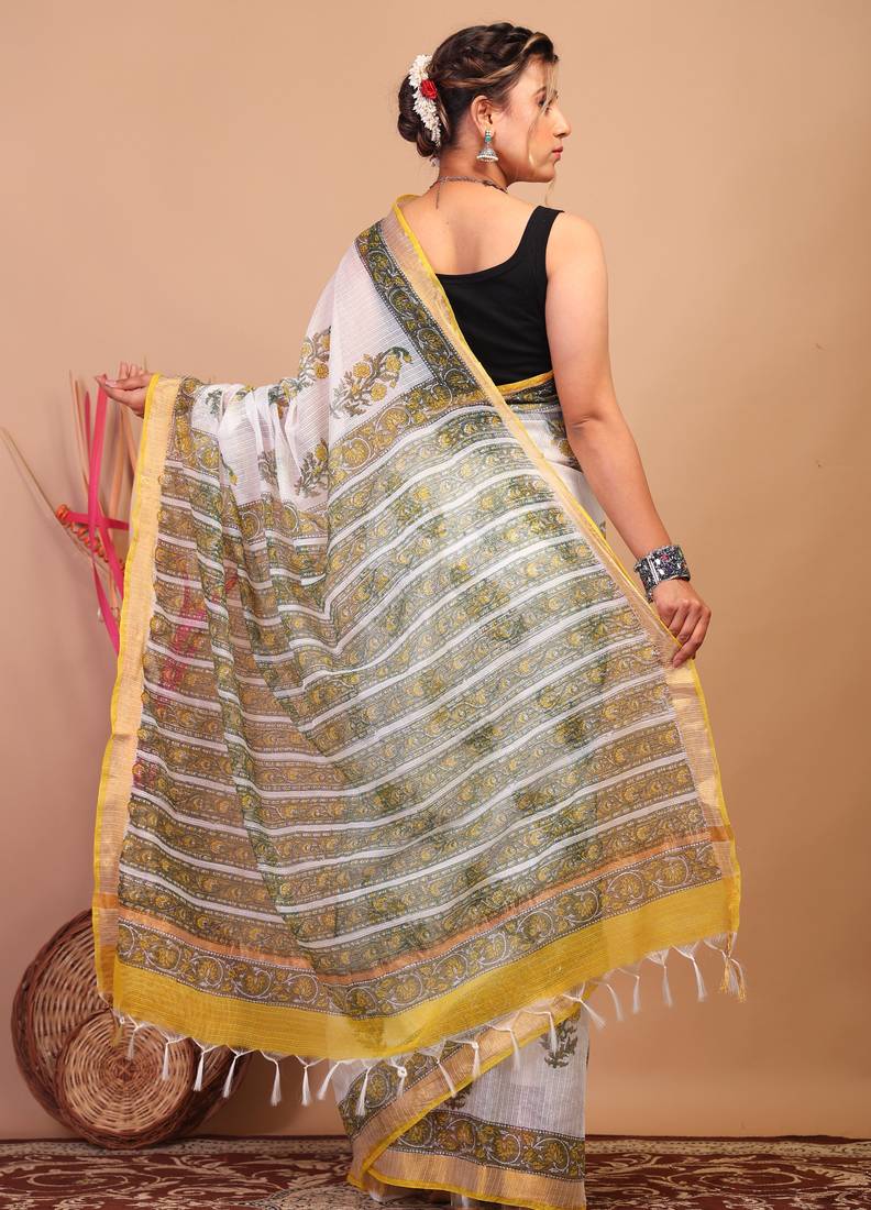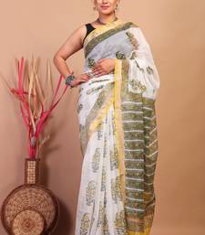 White zari work kota doria kota doria ethnic saree with unstitched blouse
