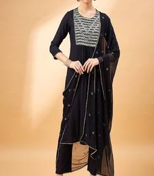 Black color embroidered mirror work pleated round neck kurta with trouser & dupatta
