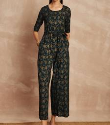 Black color floral printed waist tie-ups basic jumpsuit