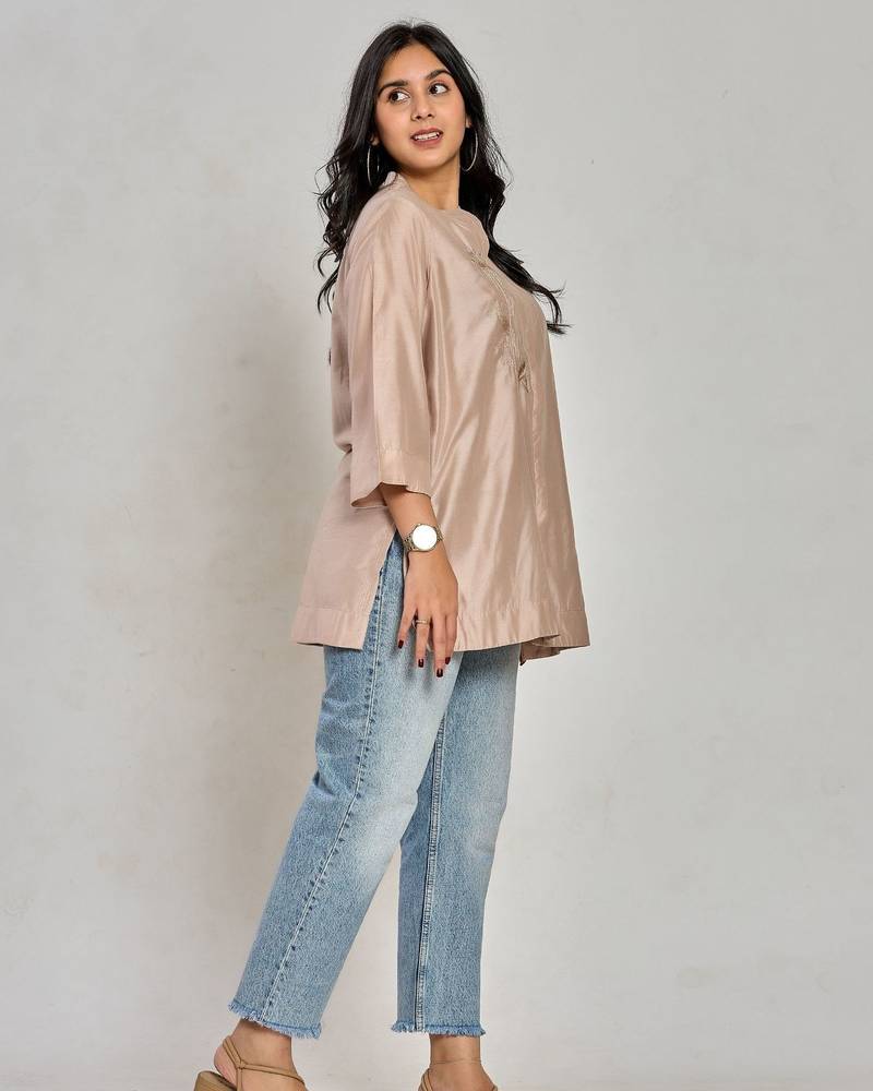 | Product Name | Champagne Beige Color Resham Work With Zari Tunic | |