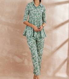 Green color floral printed pure cotton tunic with trouser