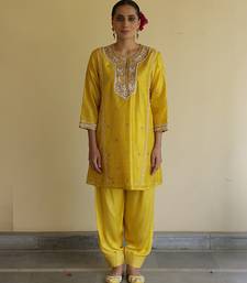 Yellow embroidered silk kurta set