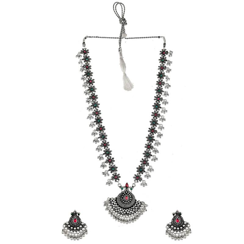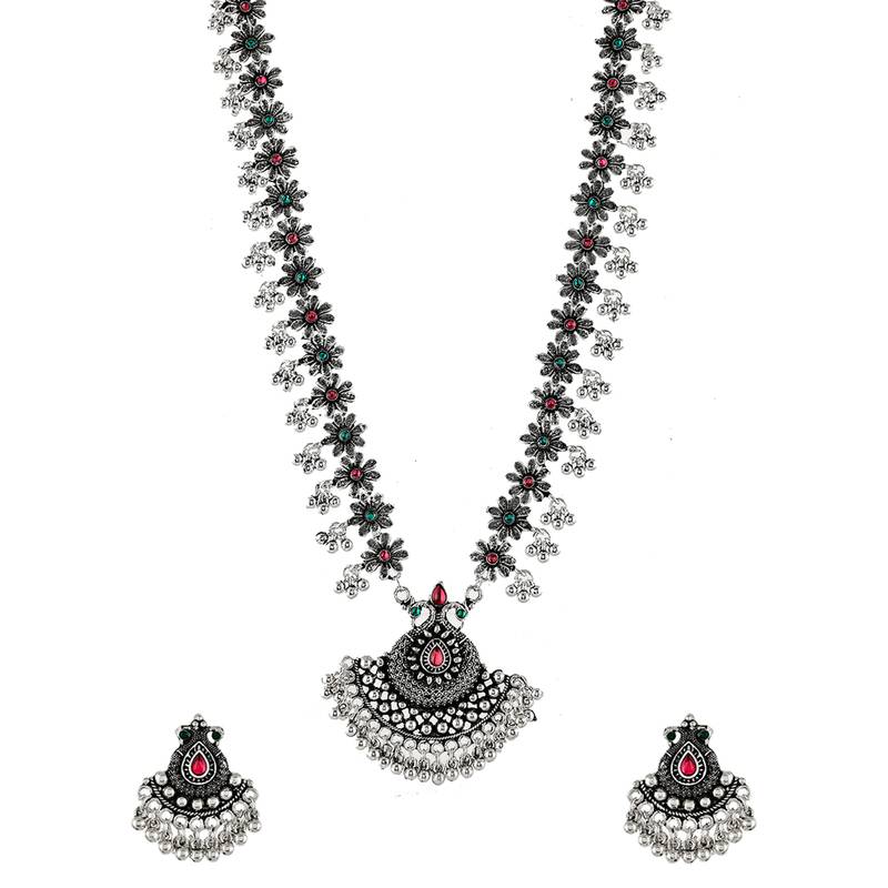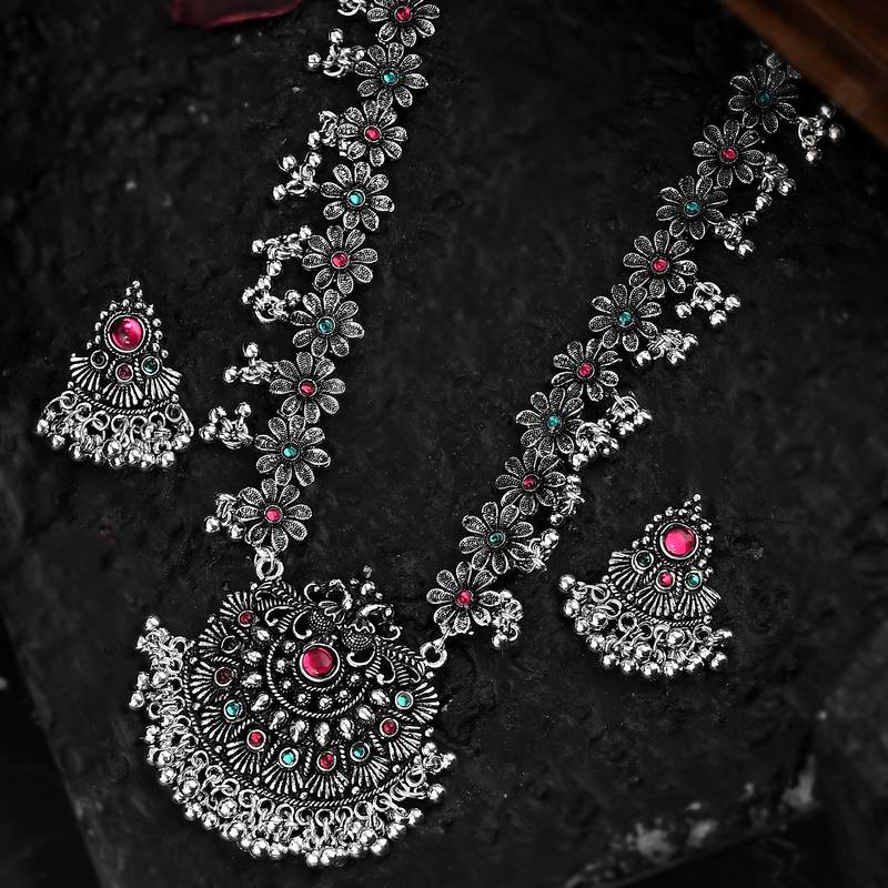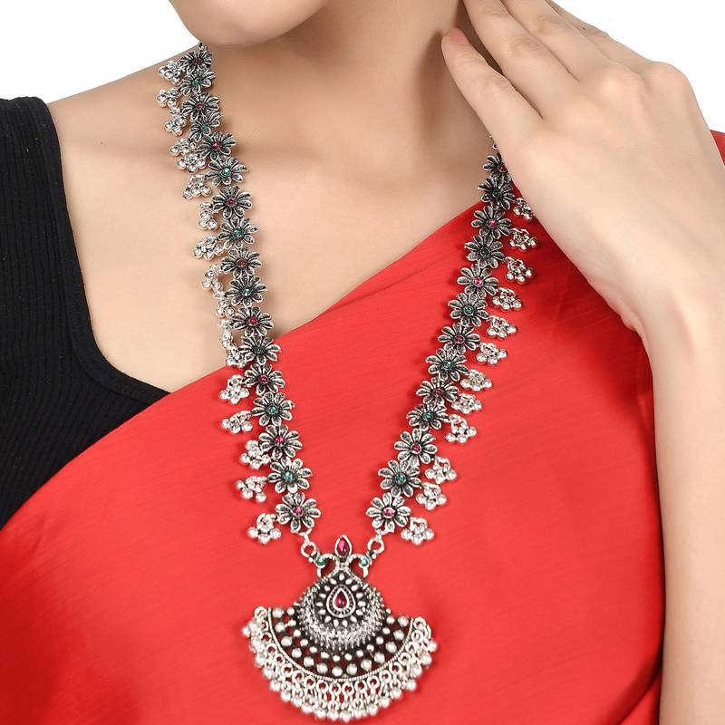 | Product Description | 1 Product :Oxidised Silver Plated Handcrafted Stone And Ghungroo Long Necklace Set With Nath For Women And Girls 2 Occasion :Bring Your Style To A Whole New Level With This Handcrafted Piece Of Jewellery. When You're Celebrating A Special Occasion : A Birthday,Wedding,Or Personal Milestone This Piece Adds That Extra Something That Makes Us Feel Special And Looking Our Best. 3 Style : This Is A Perfect Pair For You Ethnic And Traditional Outfit That Will Bring Out A Rich Look!4 Size :Nacklace Drop Lenght (Lx W 23x2 Cm)+Adjustable Drawstring, Pendant (Lx W 6x6 Cm), Earring (Hx W 4x3.5 Cm) |