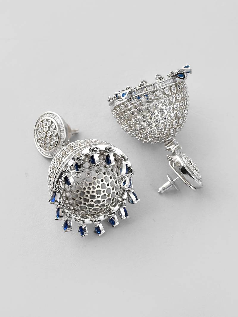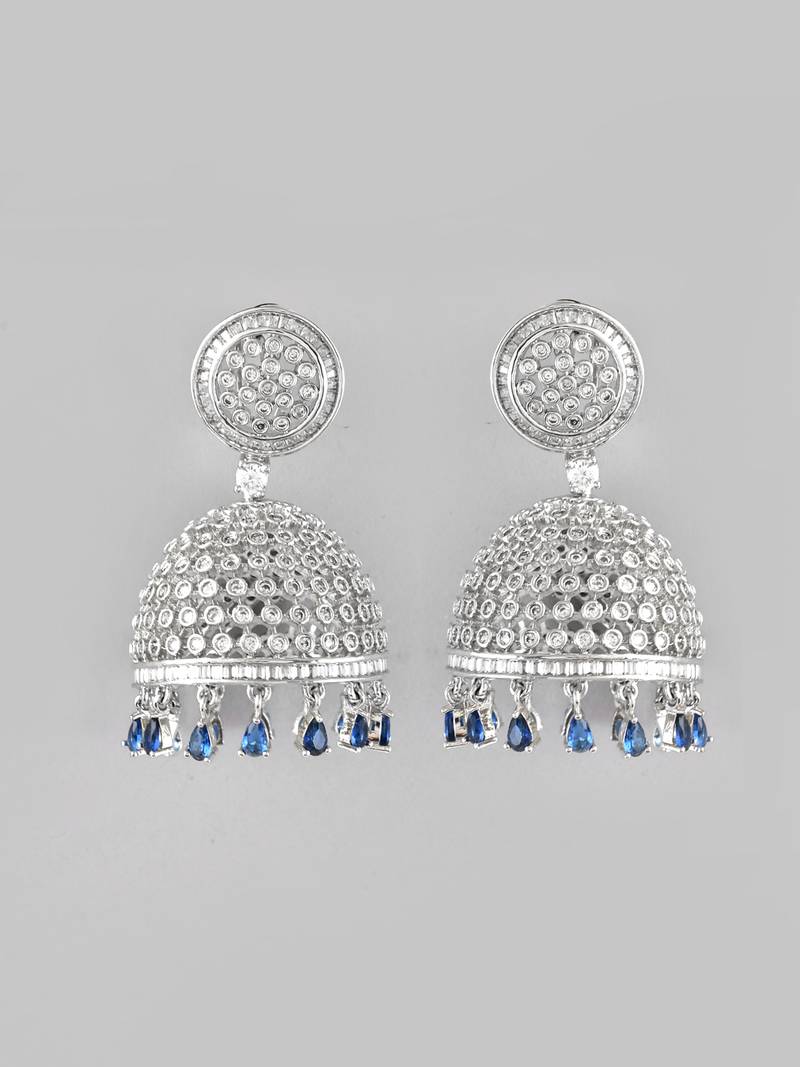 | Product Name | Silver Plated Blue Ad Studded Crystal Jhumkas Earrings | |