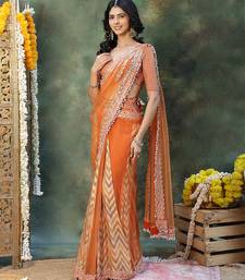 Rust orange embroidered silk saree