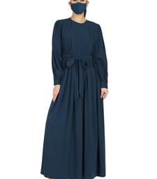 Teal abaya with multiple pleats and belt. comes with a matching hijab.