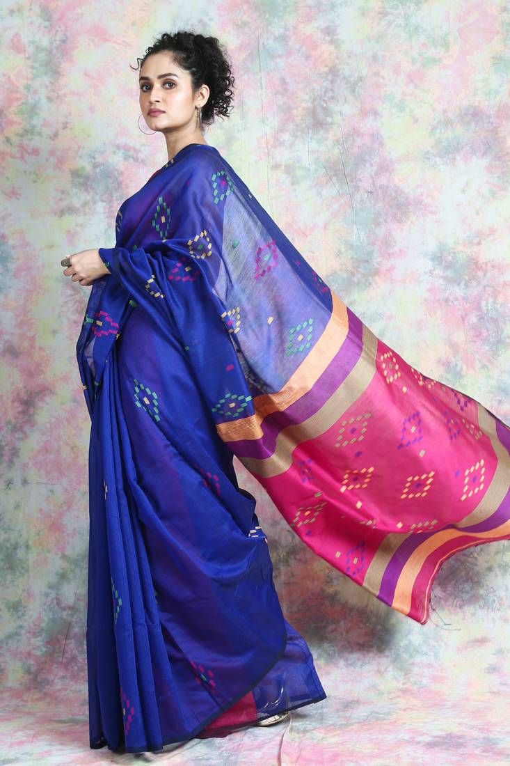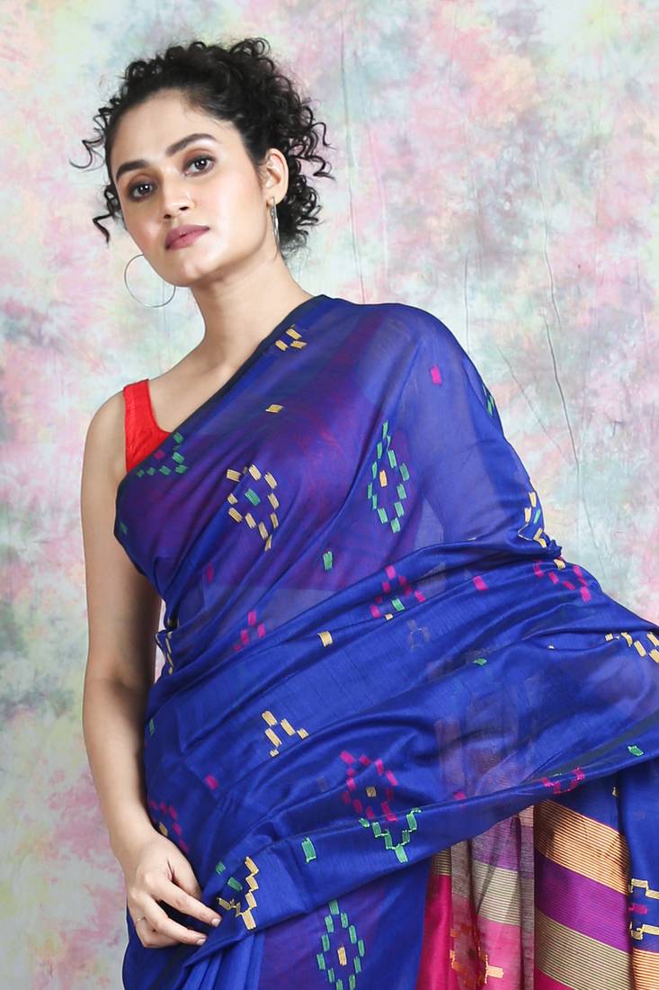| Product Name | Royal Blue Woven Blended Cotton Saree With Blouse | |