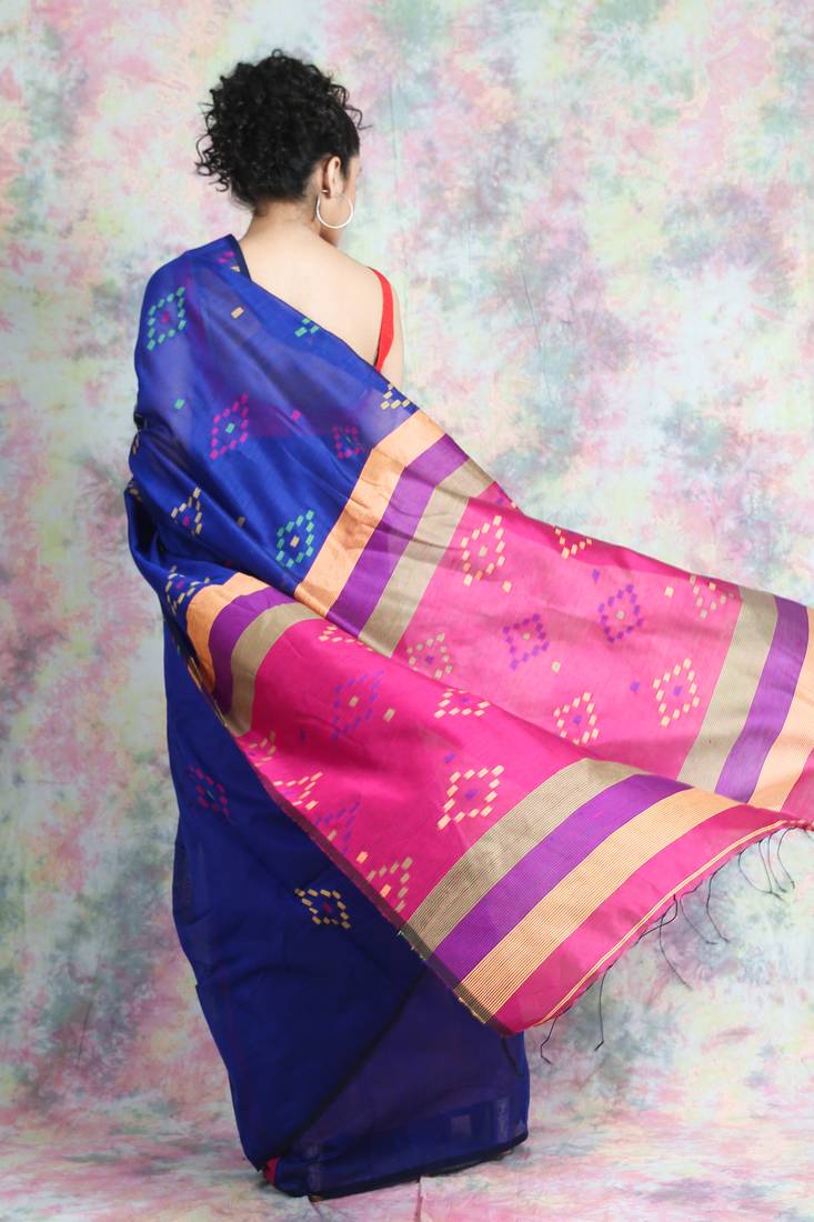 | • | Saree | : | Color- Royal Blue / Fabric- Blended Cotton |