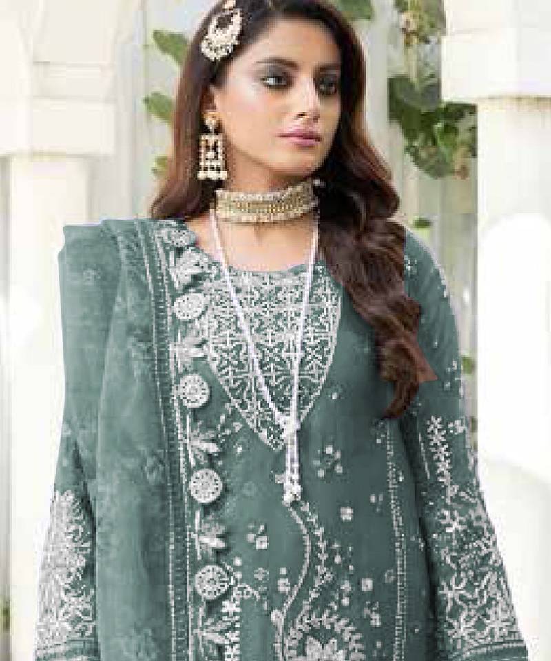 | • | Kameez | : | Color- Dark Sea Green / Fabric- Faux Georgette |