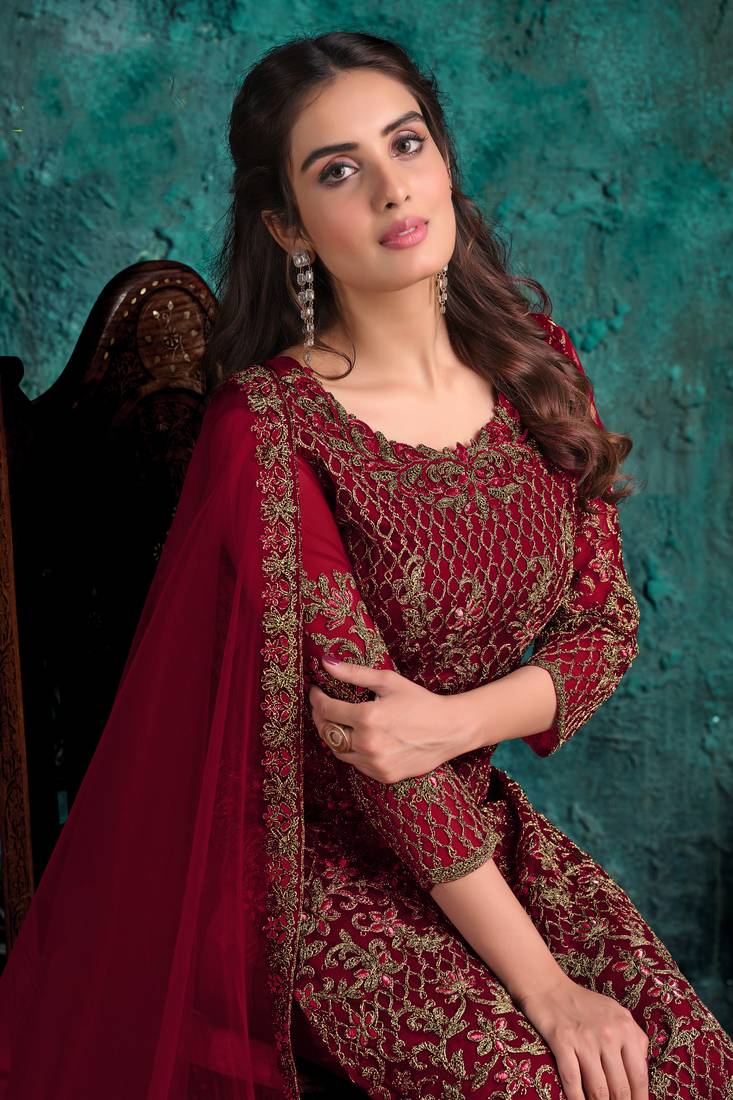 | • | Kameez | : | Color- Maroon / Fabric- Net |