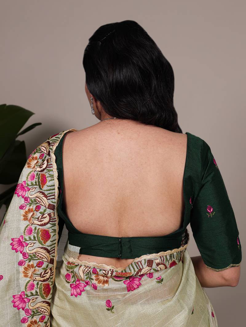 | • | Blouse | : | Color- Mehandi Green / Fabric- Dupion Silk |