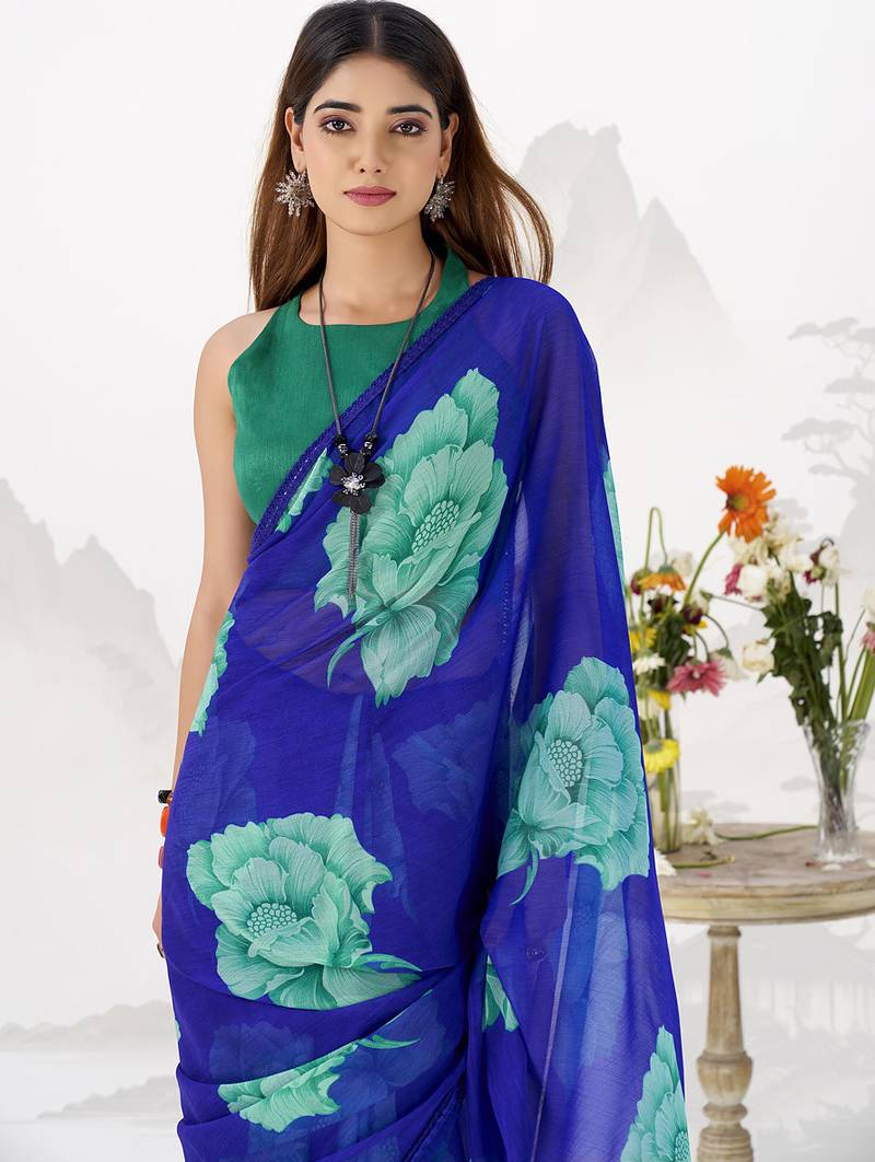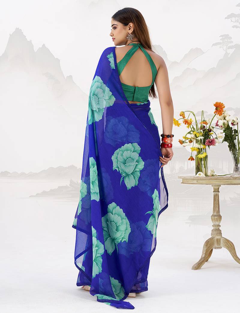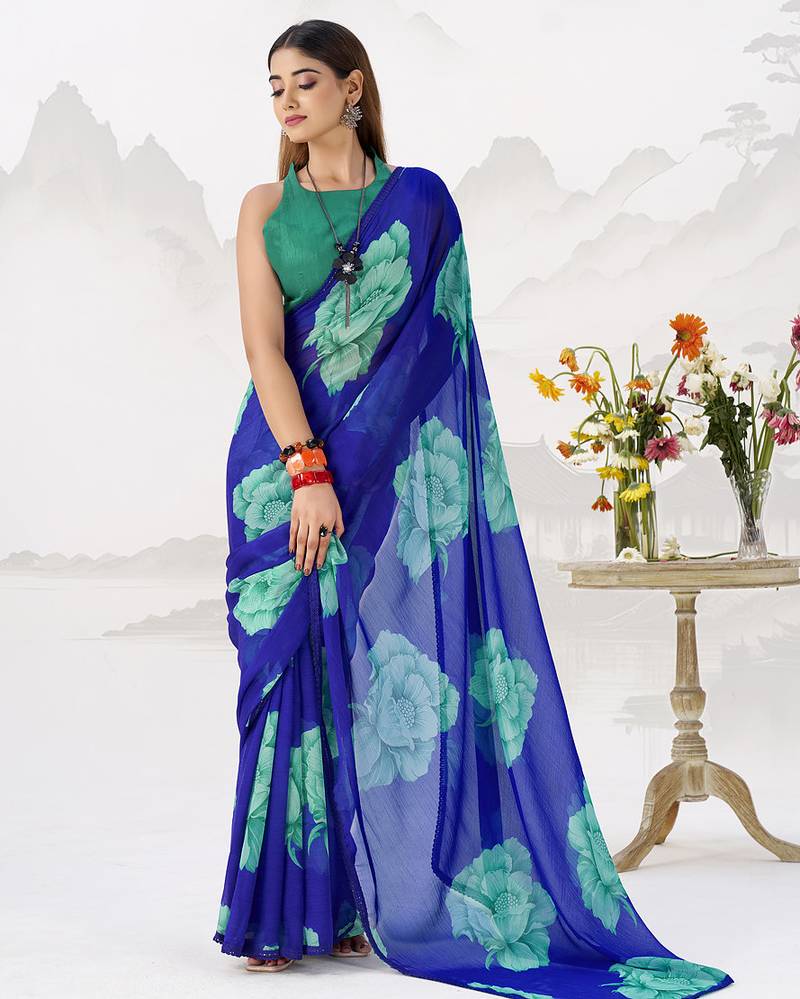 Product Name Sheer Elegance Chiffon Floral Saree With Delicate Lace Border