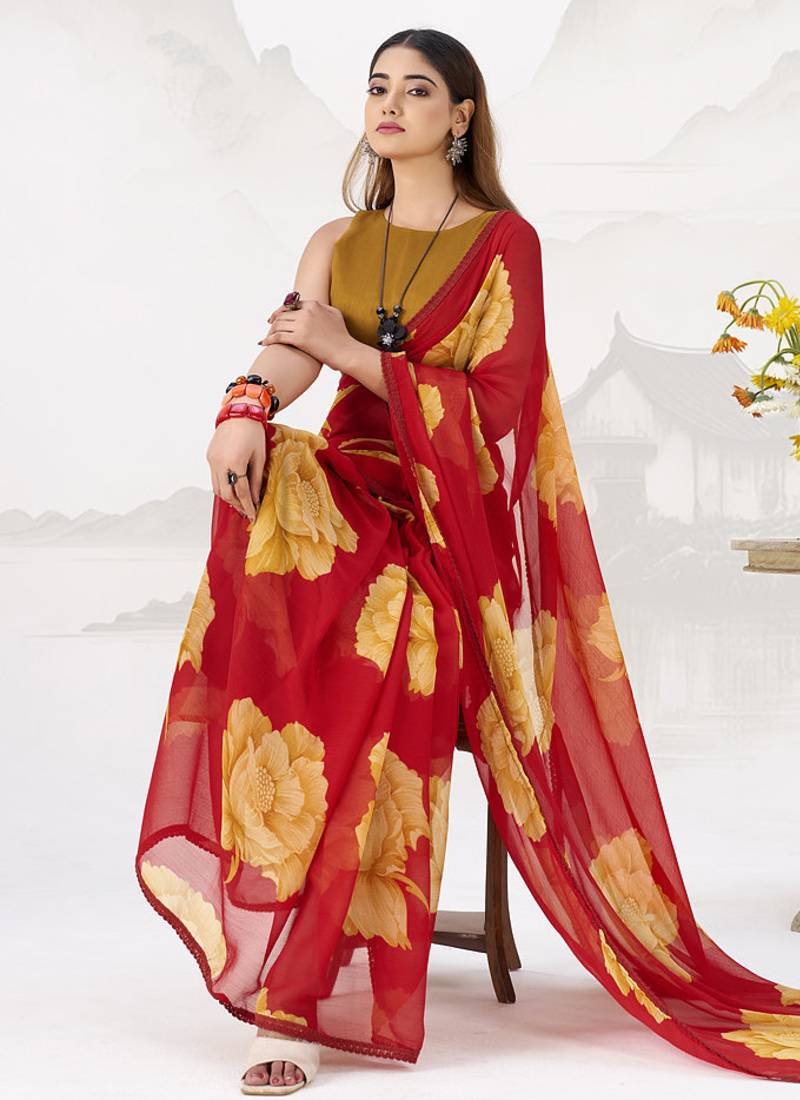 Product Name | Sheer Elegance Chiffon Floral Saree With Delicate Lace Border | |