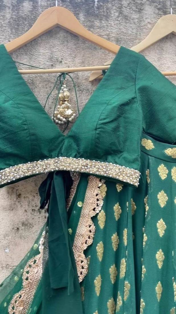 Darkgreen banarasi georgette stunning lehenga choli with dupatta