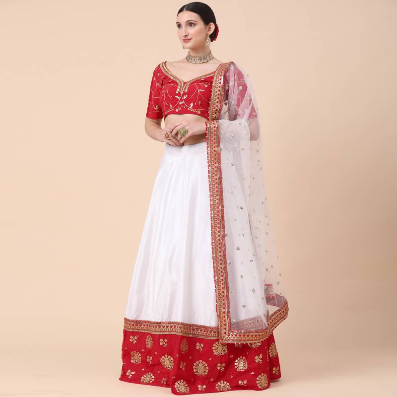 | Product Name | Red And White Silk Satin Emboidered Lehenga Choli With Blouse | |