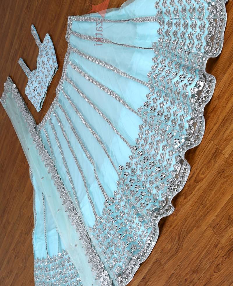 Skyblue mirror embroidery net premium lehenga choli with dupatta