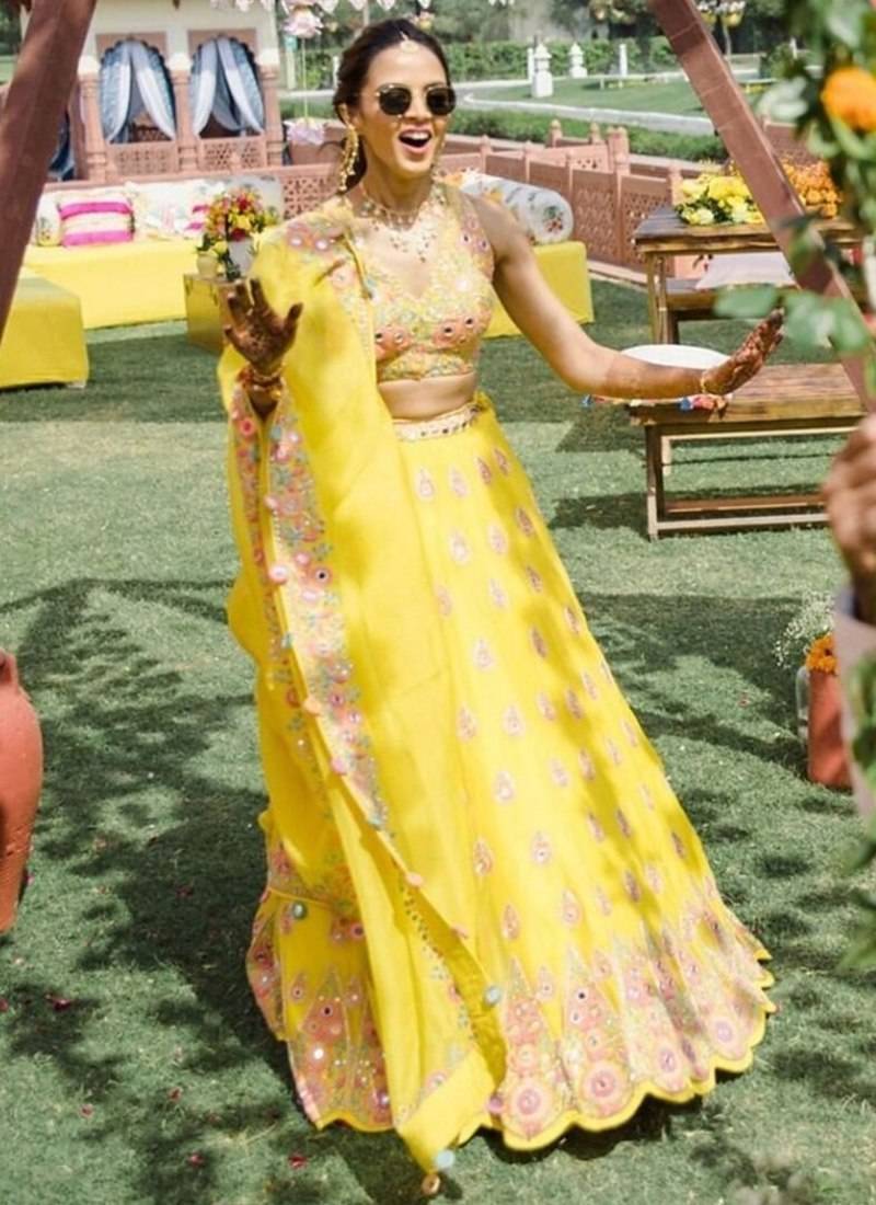 Yellow embroidery georgette fancy lehenga choli with dupatta