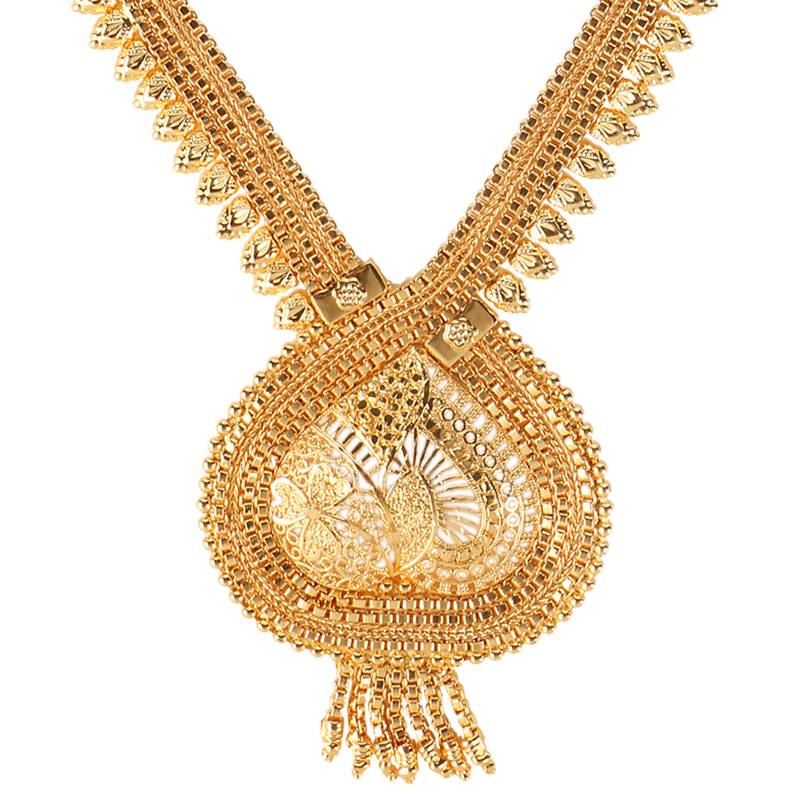 | Product Name | Stylish Traditional 1 Gram High Gold Plated Rope Style Brass Long Haram Necklace Set For Women | |