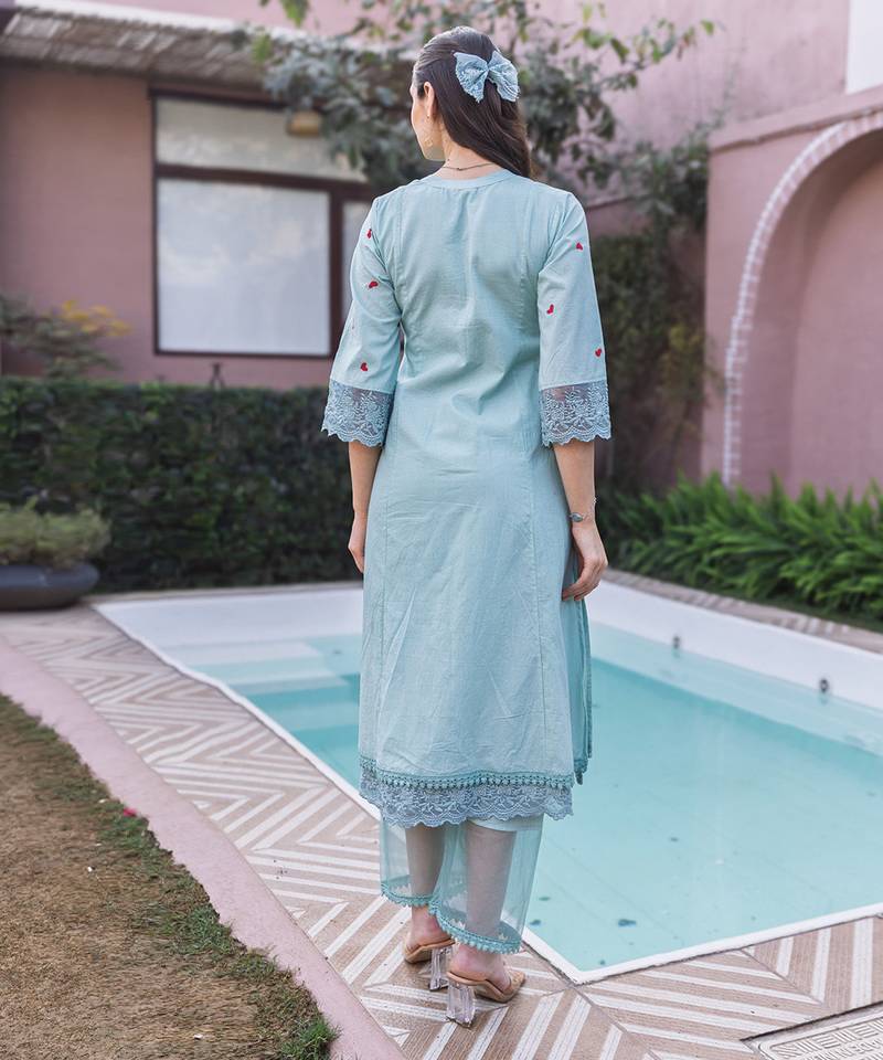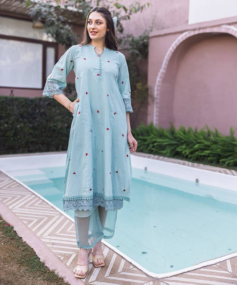 | Product Description | This Blue Embroidered Cotton Straight Suit Set Showcases A Refreshing Color With Intricate Embroidery. Designed For Comfort And Elegance, It Features A Straight Silhouette That Flatters Effortlessly. Perfect For Daytime Events And Casual Outings, It Adds A Graceful And Modern Touch To Your Ethnic Wardrobe.
