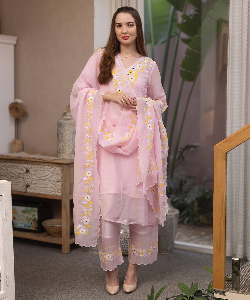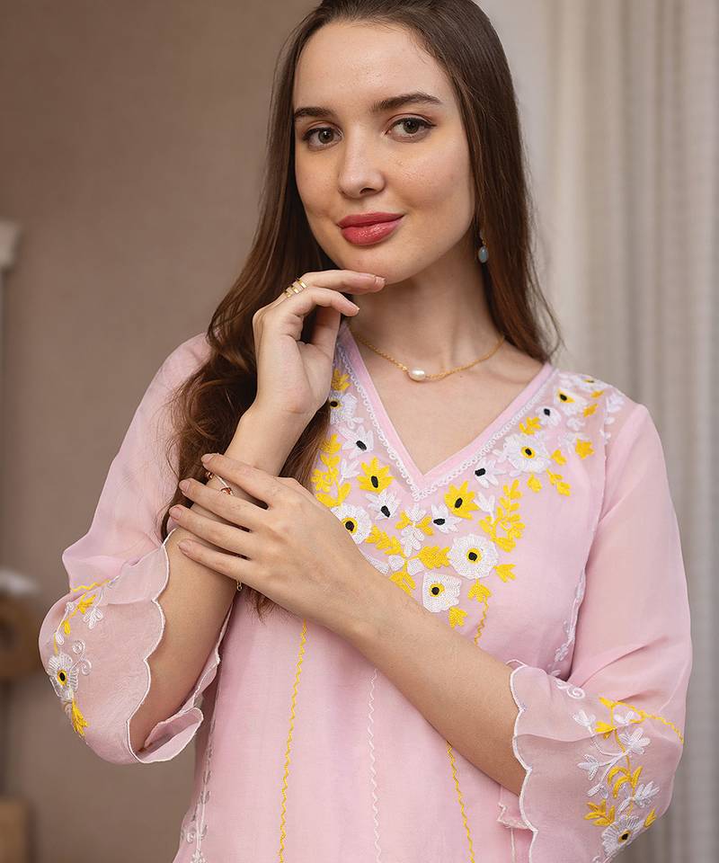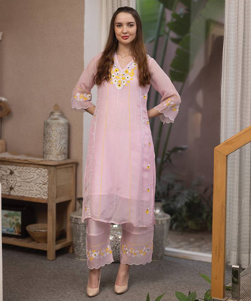 | Product Name | Baby Pink Embroidered Viscose Straight Suit Set | |