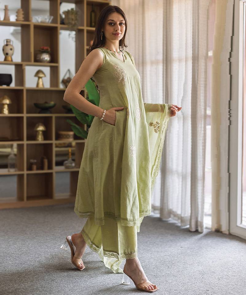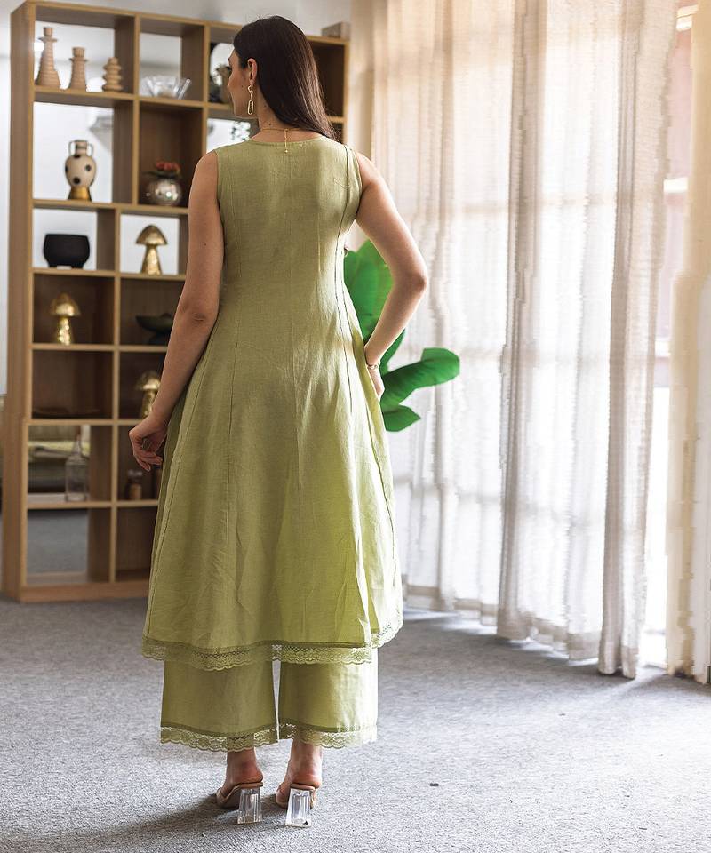 | Product Description | This Green Embroidered Linen Straight Suit Set Combines Earthy Tones With Elegant Craftsmanship. The Breathable Linen Fabric Ensures Comfort, While The Intricate Embroidery Enhances Its Appeal. Ideal For Casual And Festive Occasions, It Offers A Stylish And Sophisticated Look With A Modern Touch.