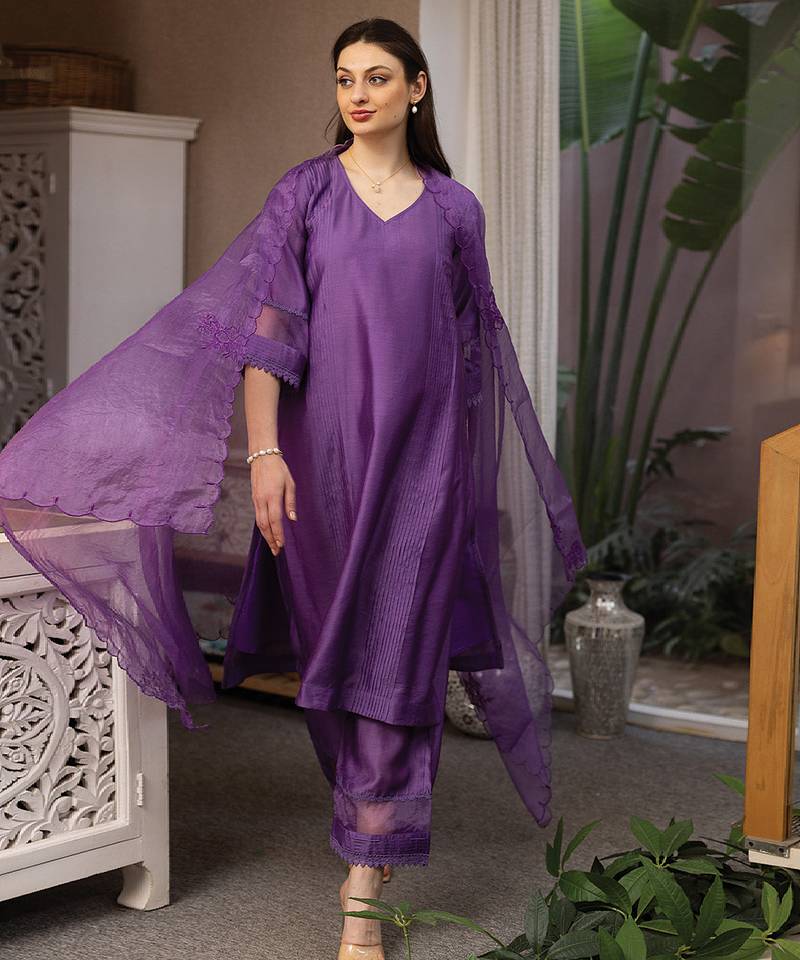 | Product Name | Purple Embroidered Chanderi Straight Suit Set | |