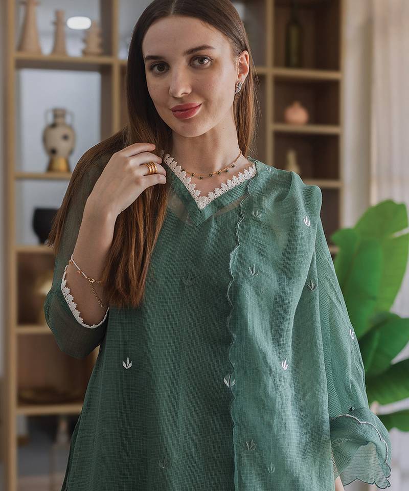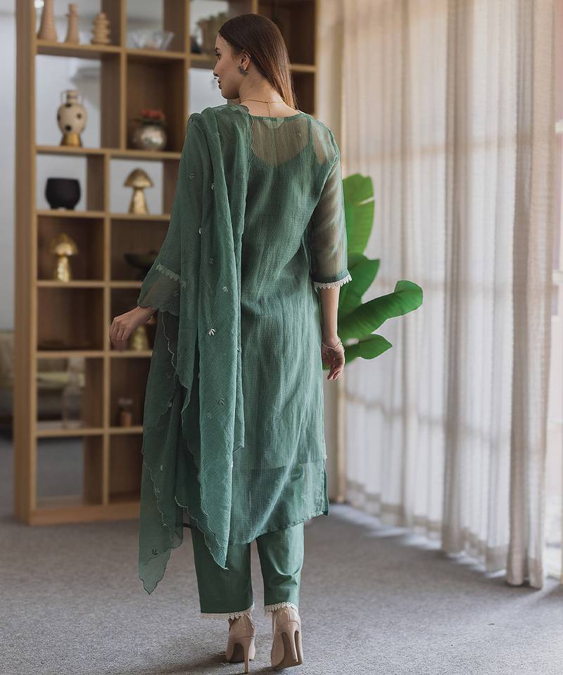 | Product Name | Green Embroidered Cotton Straight Suit Set | |