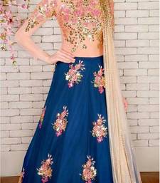 Blue embroidered art silk unstitched ghagra choli