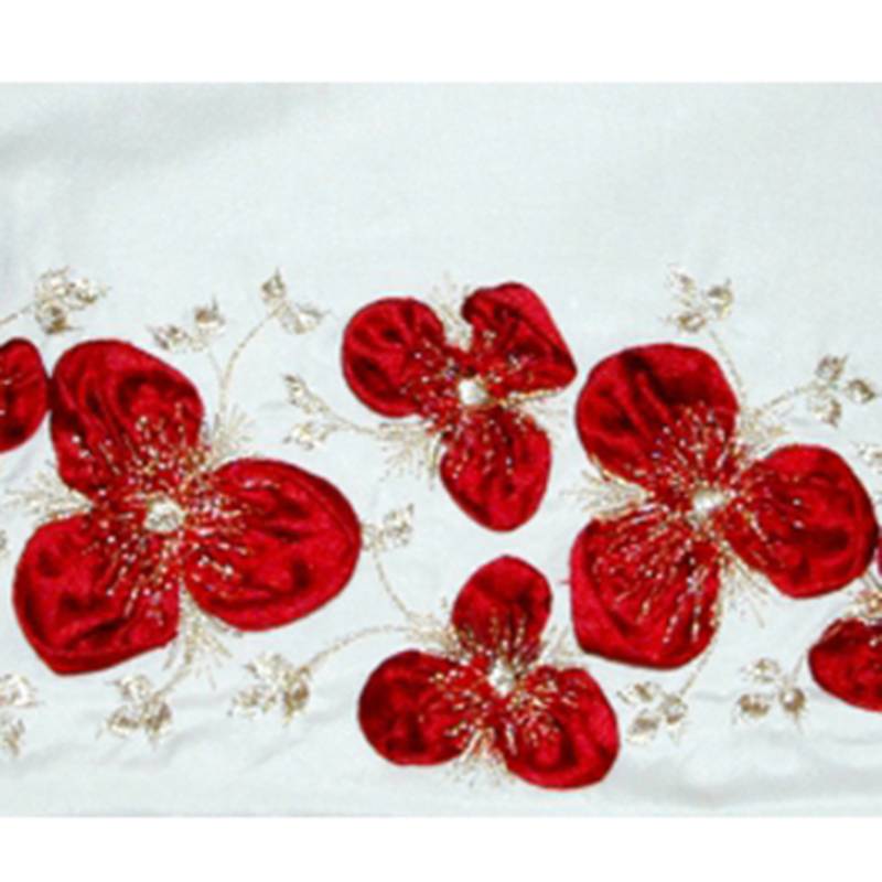 | Product Name | Milky White With Attractive Red Satin Flowers Embroided Silk Handbag | |