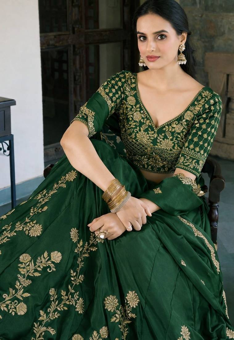 | Product Name | Green Embroidered Treditional Lahenga Choli With Blouse | |