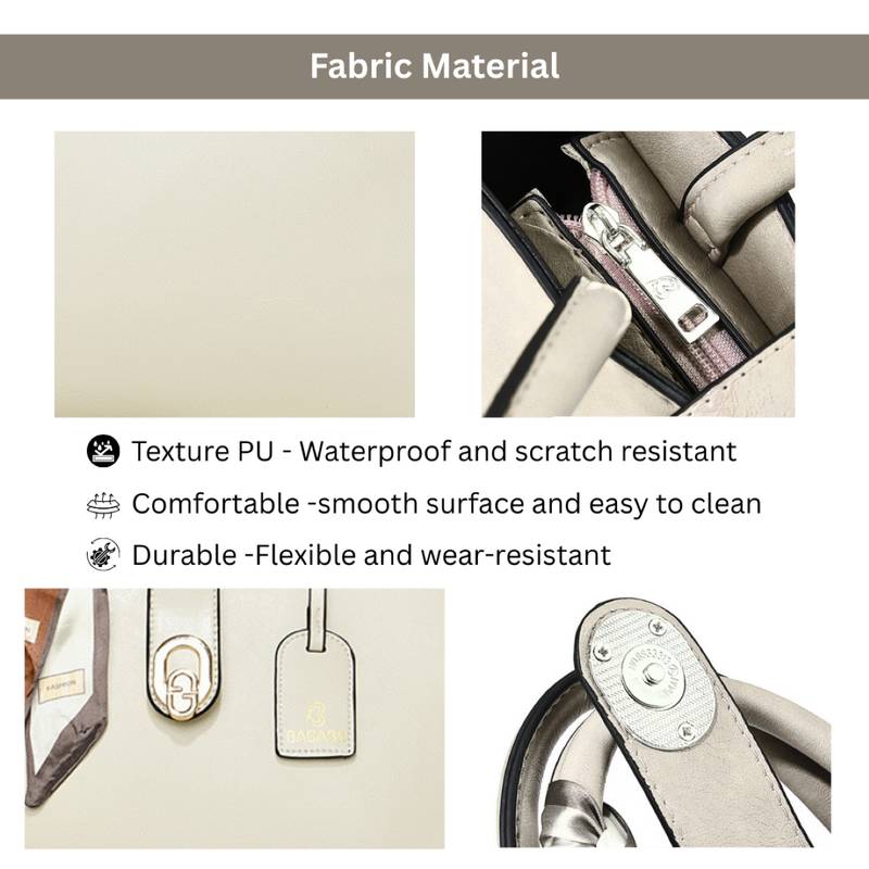 The Classic Handbag Is An Elegant Structured Tote Designed For The Modern Professional Woman. Crafted From Premium Pu Leather With A Smooth Finish, This Sophisticated Handbag Combines Style With Functionality For Office Workers And Professionals Alike. The Rectangular Silhouette Features Beautiful Gold Hardware And Comes With A Decorative Silk Scarf Accent That Adds A Touch Of Refined Elegance. Measuring 35 Cm In Length, 30 Cm In Height, And 35 Cm In Width, This Medium Sized Tote Offers A Generous 15 Litre Capacity Whilst Maintaining A Lightweight Profile At Just 800 Grams. The Bag Is Thoughtfully Organised With 3 Main Compartments, 4 Pockets Including An Interior Zip Pocket, And 2 Zippered Compartments, Providing Ample Space For Your Laptop, Documents, And Daily Essentials. The Fabric Lined Interior Ensures Your Belongings Stay Protected. It Features Dual Top Handles For Classic Carrying And Includes A Detachable 120 Cm Adjustable Shoulder Strap In Matching Colour, Offering Versatile Wearing Options. With Its Solid Pattern And Classic Design, This All Season Handbag Is Perfect For The Office Or Professional Settings. The Vegan Leather Construction Makes It A Stylish Choice For The Conscious Consumer. Included Components: Handbag And Detachable Sling Strap.