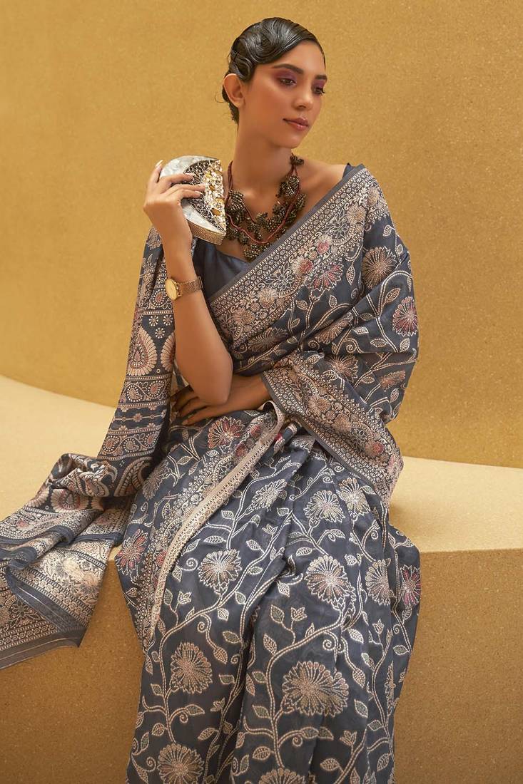 | Product Name | Grey Lucknowi Chikankari Weaving Work Saree With Blouse | |