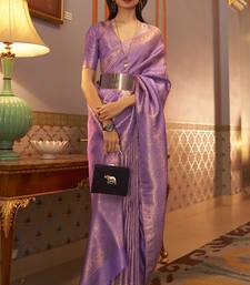 Iris lavender golden zari shine soft kanjivaram silk wedding saree with blouse