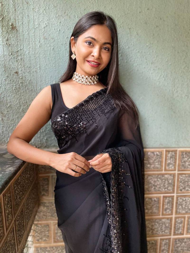 | • | Saree | : | Color- Black / Fabric- Faux Georgette |