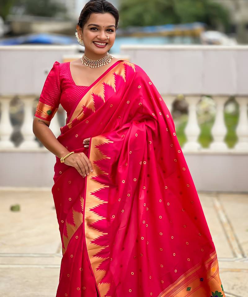 | • | Saree | : | Color- Pink / Fabric- Paithani Silk |