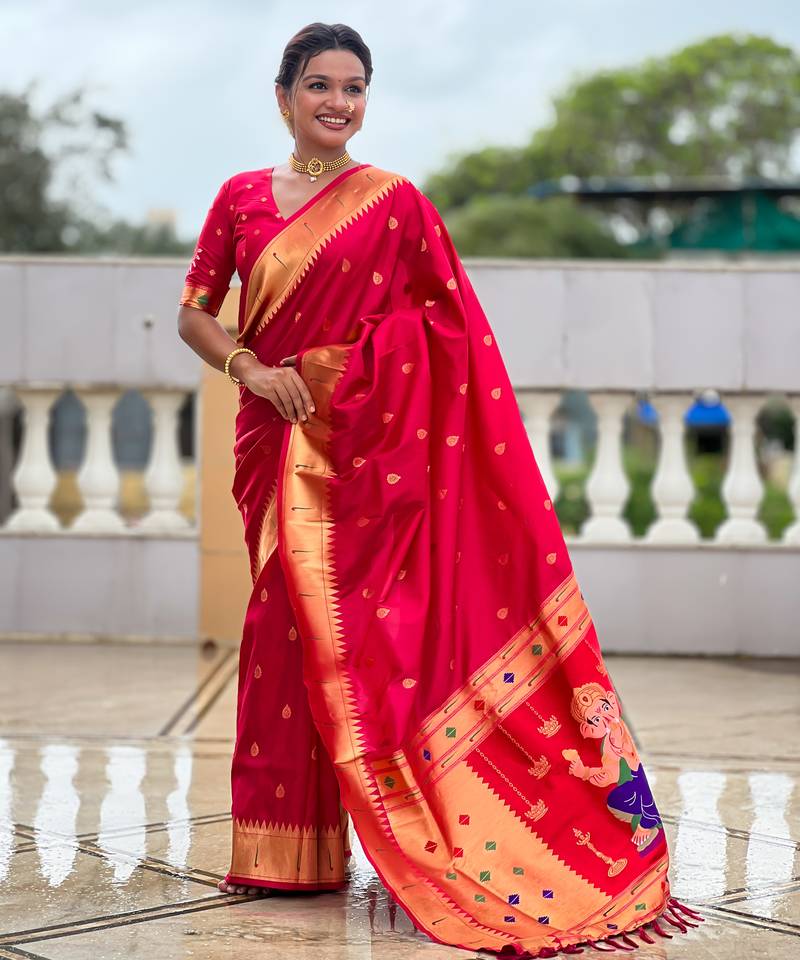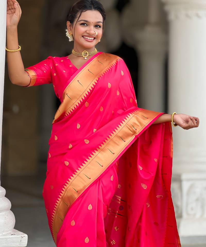 | Product Name | Soft Paithani Silk Saree With Zari Weawing Motifs Design And Meenakari Weawing Rich Pallu | |