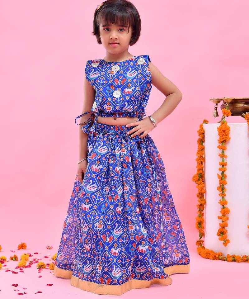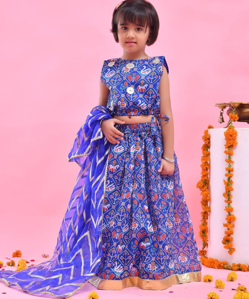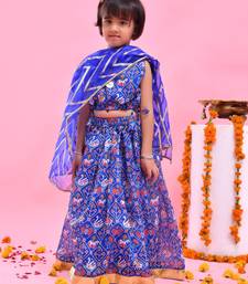 Product Description | Featuring A Blue, Printed Lehenga Set In Chanderi Fabric. It's Paired With A Blouse And Gota Embellished Chanderi Dupatta.