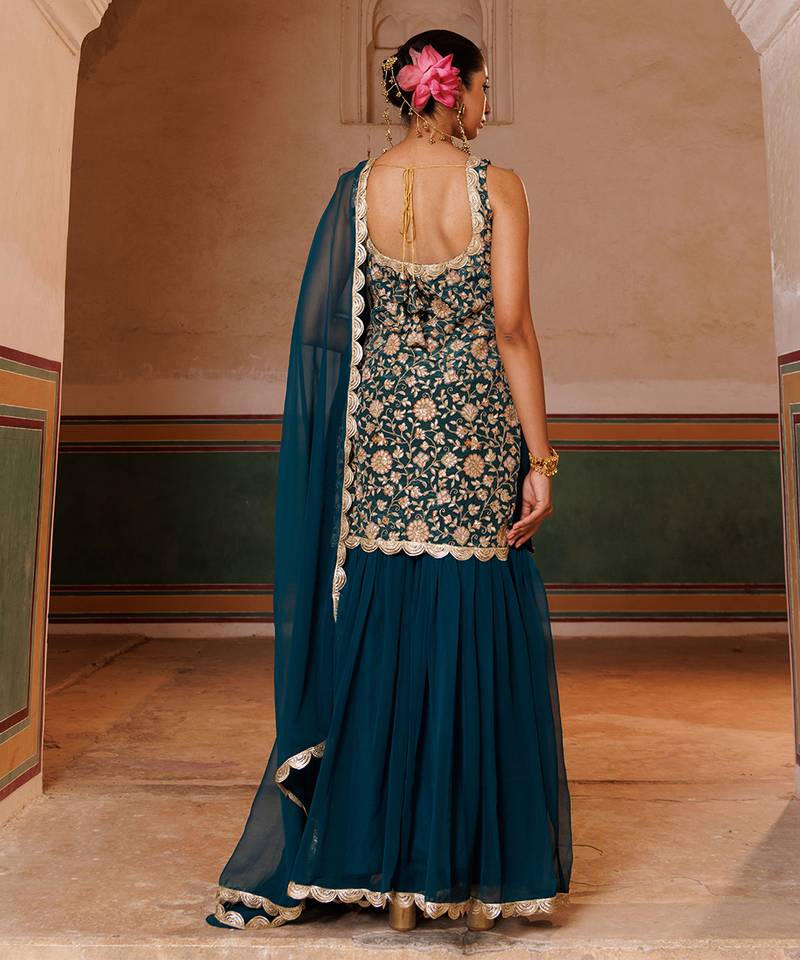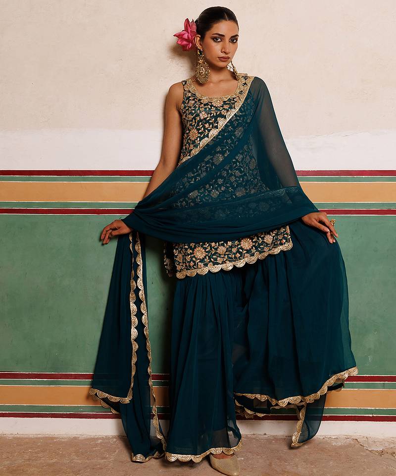 Green embroidered crepe sharara set