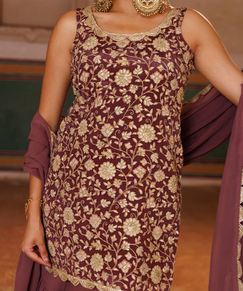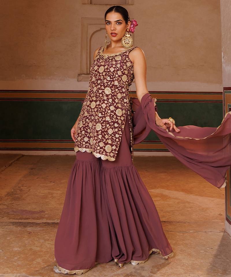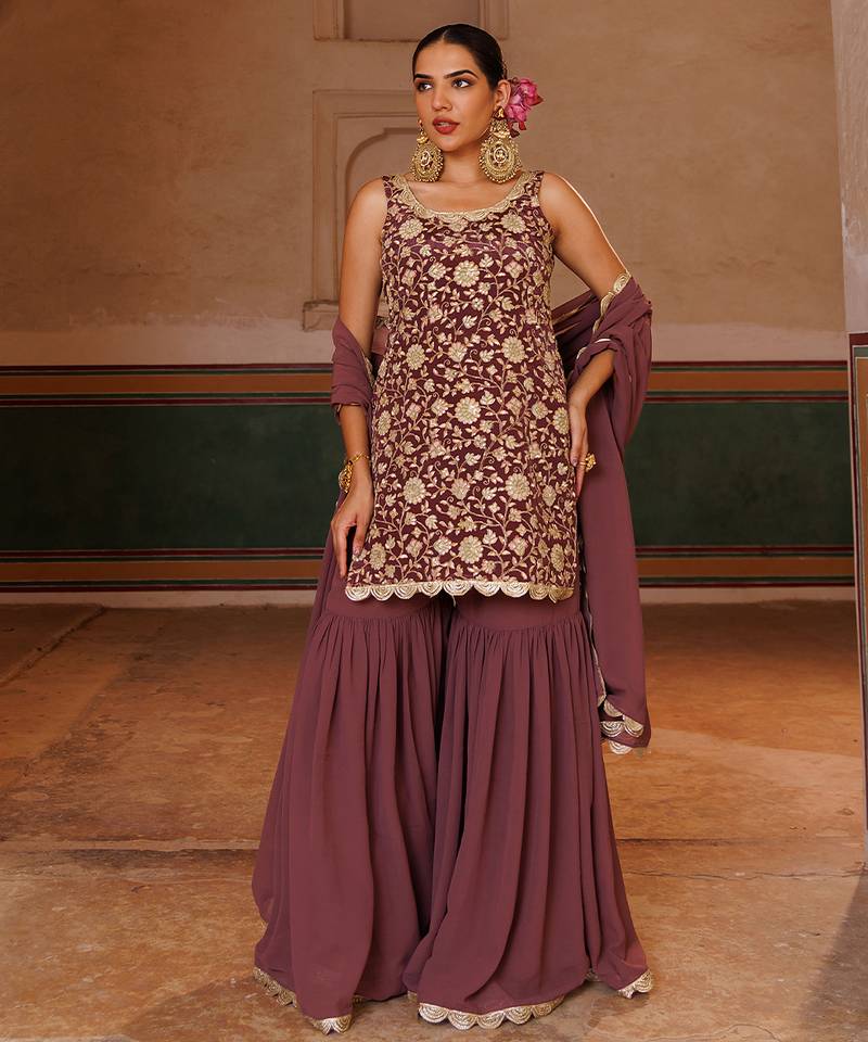 | Product Name | Mauve Embroidered Crepe Sharara Set | |