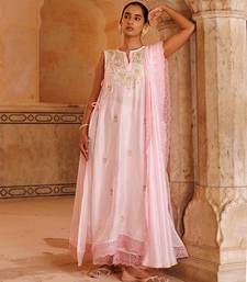 Pink embroidered chanderi kurta set