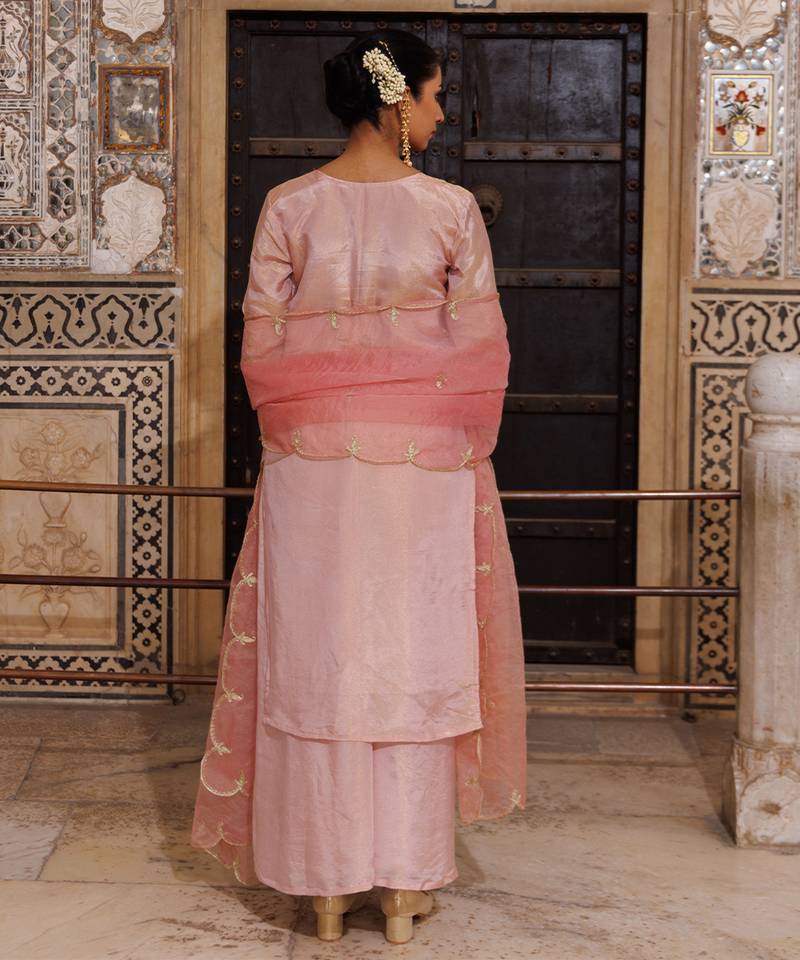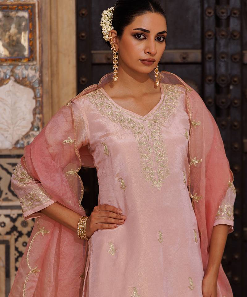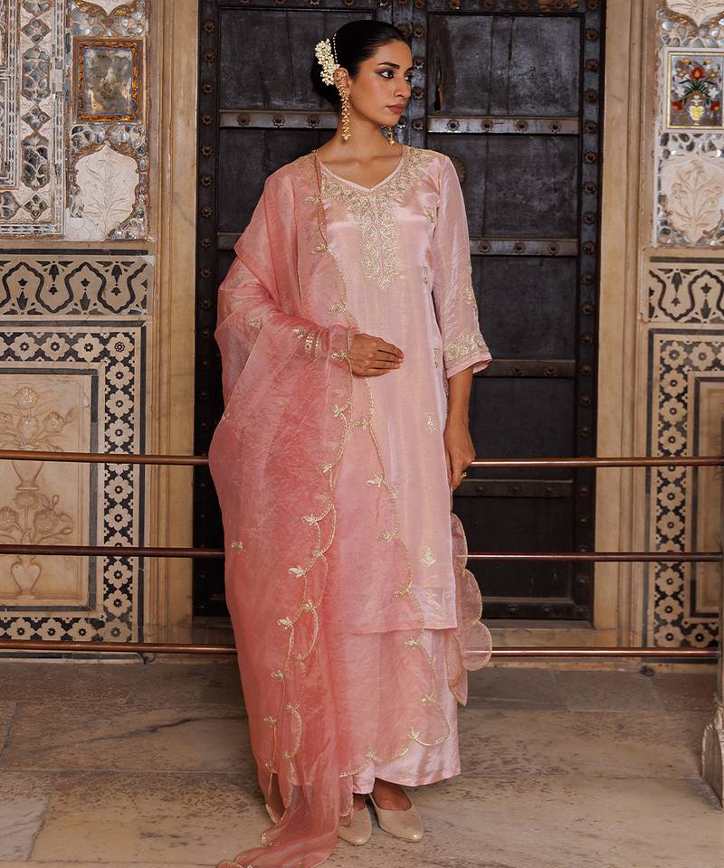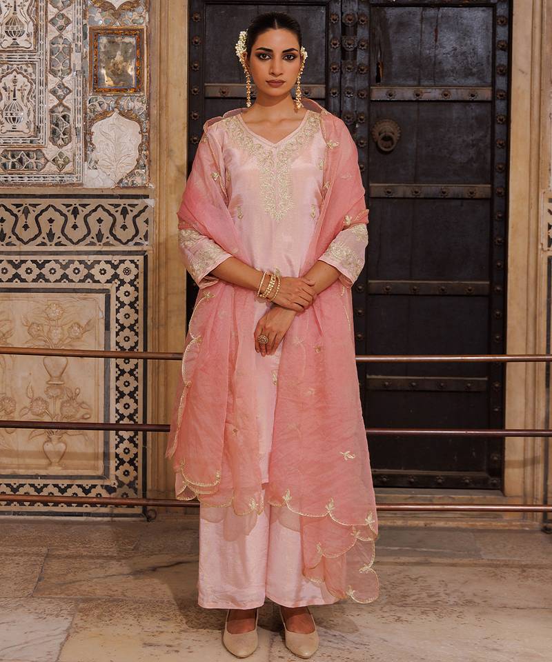 Pink embroidered silk kurta set