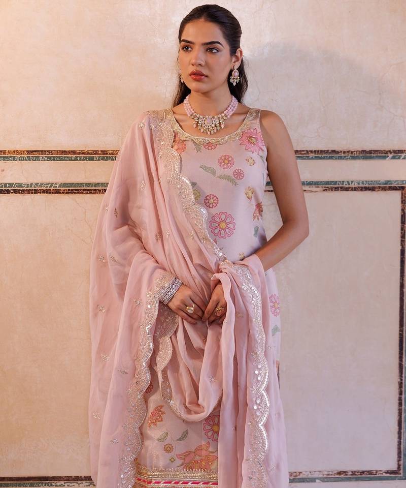 Product Name | Pink Floral Printed Tissue Kurta Set | |