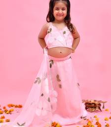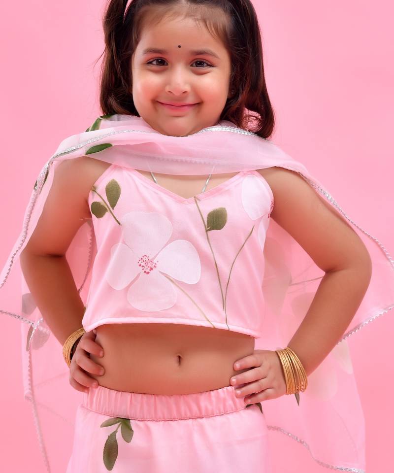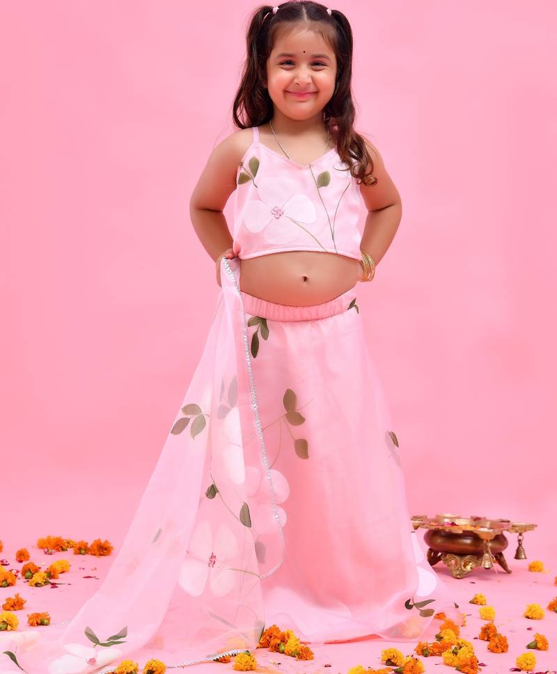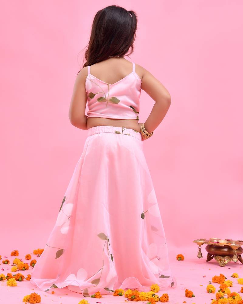 Product Description | Featuring Pink Organza Floral Hand Painted Lehenga Set . It's Paired With A Plain Organza Blouse And Gota Embellished Hand Painted Dupatta.