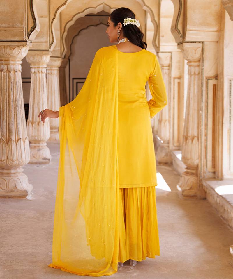 | Product Name | Yellow Embroidered Silk Sharara Set | |