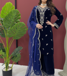 Blue velvet kurti with palazzo designer suit set wedding wear dress