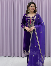 | Product Name | Purple Color Velvet Suit With Dupatta Designer Palazzo | |