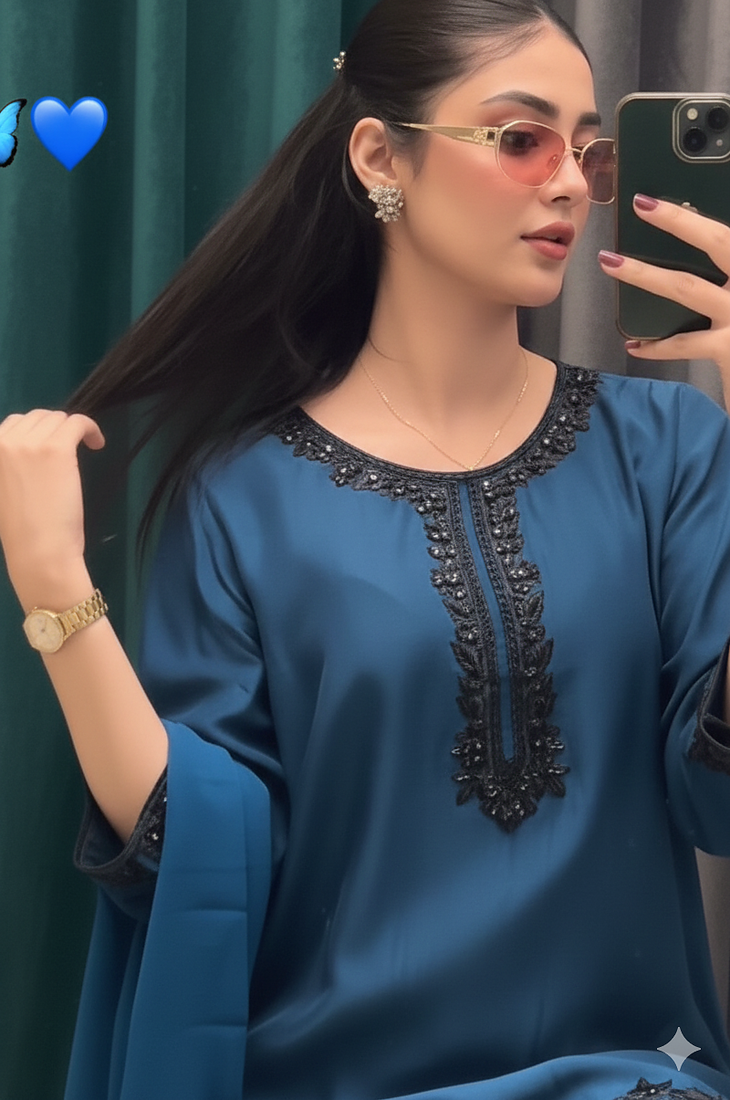 | • | Dupatta | : | Color- Blue / Fabric- Crepe |