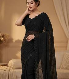 | Product Name | Black Color Fox Geogate With Beautiful Original Black Beeds Work With Cut Work Border Saree | |