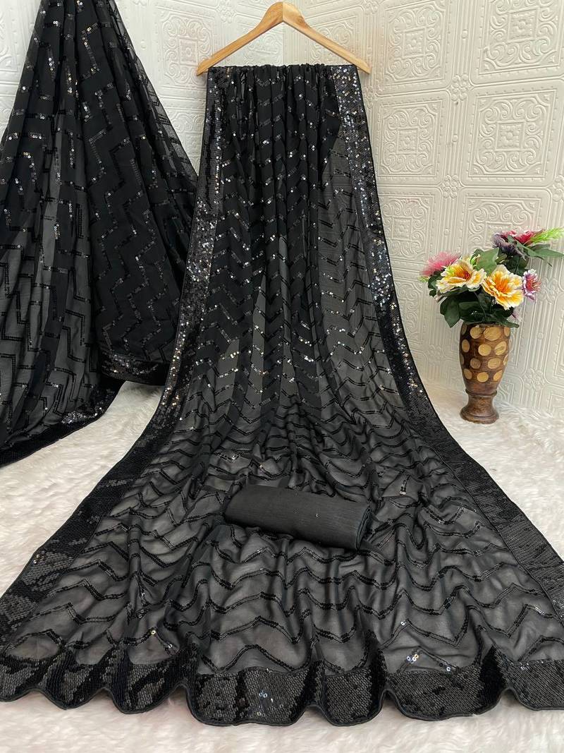 Product Name Black Color Sequence Zig Zag Pattern All Over Work Georgette Silk Saree